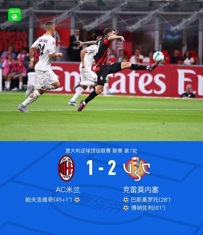 8月24日,北京的时间是意大利足球顶级联赛的第一次,AC Milan在家中面对Cremonese。在上半场,巴斯基罗托首次得分。在中场休息时,帕夫洛维奇帮助米兰与得分兼容。下半场,Bonazoli打破了Barb World Wave。比赛结束时,米兰在家里输给了克雷蒙斯1-2。在关键事件的第28分钟,巴斯基罗托(Baskiroto)在第45分钟的米兰(Milan 0-1)取得了米兰的进球,埃斯图尔皮人(Esturpinian)辅助了,帕夫洛维奇(Pavlovic)在第61分钟的米兰1-1均衡得分,米兰(Milan)在第61分钟,奇妙的,bonkazoli,bonkazoli在伟大的时刻和球员们击败了米兰(Milan),这是一场命名,命中了一场球员。球从哨所击中并在第20分钟退出了基线,莫德里克(Modric)进行了很长的传球,圣地亚哥(Santiago)在第28分钟内得分了一个凌空比赛,而后面的射门得分,巴斯基罗(Baskironutes, Santiago shot 45 minutes, shot by Esturpinian, Pavlovic combined the score, Milan 1-1 in the 48th minute, Santiago shot at a small angle Minutes, a little casual, Fofana's long shooting from the outside directly hit the 61st minute, amazing, bonazoli scored a barb, Milan 1-2 in 79 minutes, Loftus Chik fell, the ball hit the 8th of the 8th ground at the penalty place,裁判没有被判处罚款,对技术团队的技术统计数据似乎很遗憾